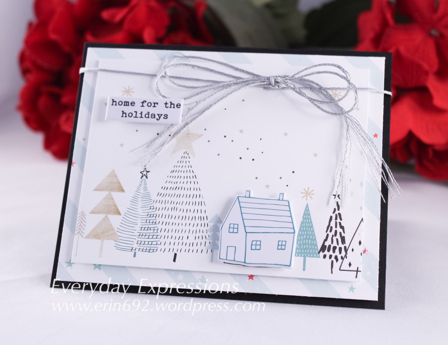 Everything is from the Simon Says Stamp December card kit except for the silver floss. How great is this card kit? I love everyone’s creations that I’ve seen in the gallery. Isn’t it great to see all of the different ideas with the same products?