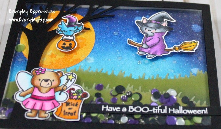 Hi Everyone, and happy fall! It is that gorgeous time of year when the leaves are changing, and finally the weather is turning cooler in Ohio. I had to finally get this adorable card posted that we created together a couple of weeks ago during my live Facebook demo using All Hallow’s Cuteness from Evelyn T. Designs.