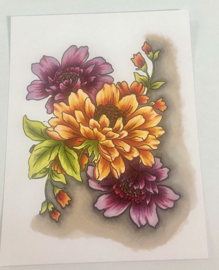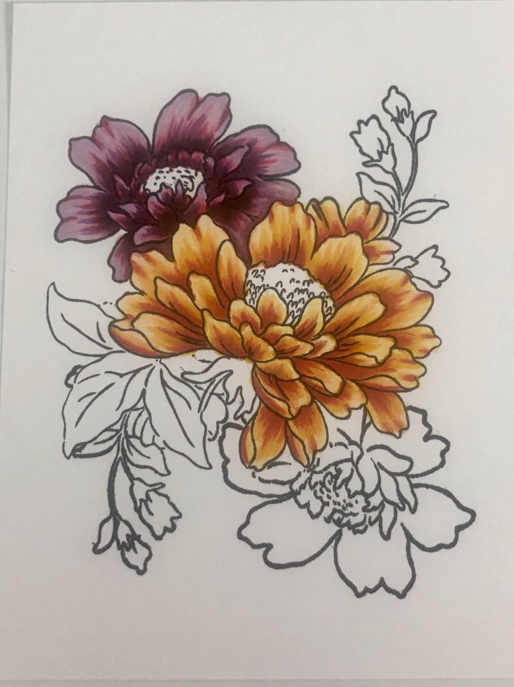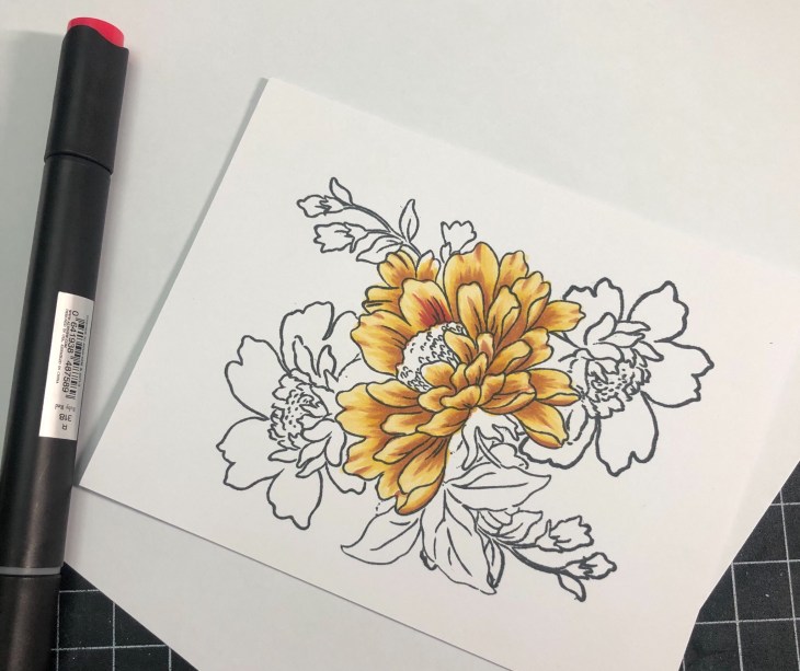 Next I colored the other two flowers with the Red Sunset collection. Isn’t that pretty? But wait …