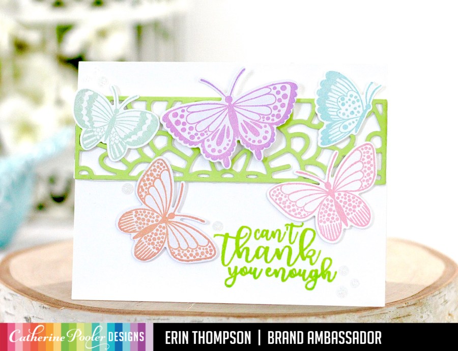 Today I’m sharing one of my favorite cards I created for Catherine Pooler’s new release, Flutters & Blooms, available this Wednesday. However, did you know that Stampnation members can order beginning at noon EDT tomorrow? Also, there is a free stamp set for all Stampnation members while supplies last! Simply add it to your cart.