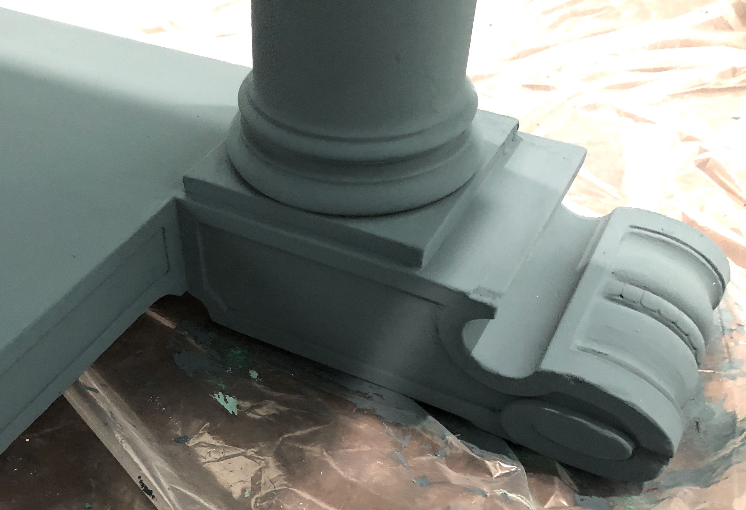 Step 5: Paint Aubusson Blue over everything except for the lightest areas. Once again, this doesn’t need to be pretty.
