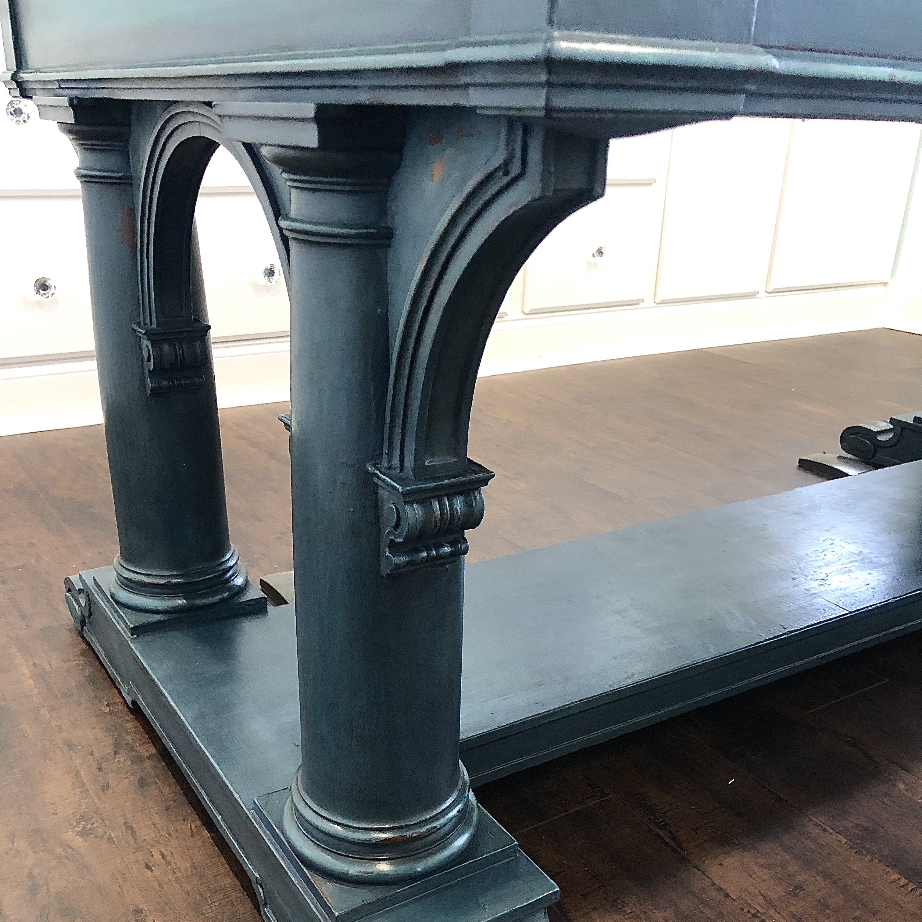Step 11: Coat the entire piece with clear wax. Make sure you get into all of the crevices! (If you have never waxed a chalk painted piece before, make sure you research some videos on the process. It’s not difficult, but you should know how much or how little to use to insure the perfect finish.) Allow to cure for at least several hours before moving to dark wax.