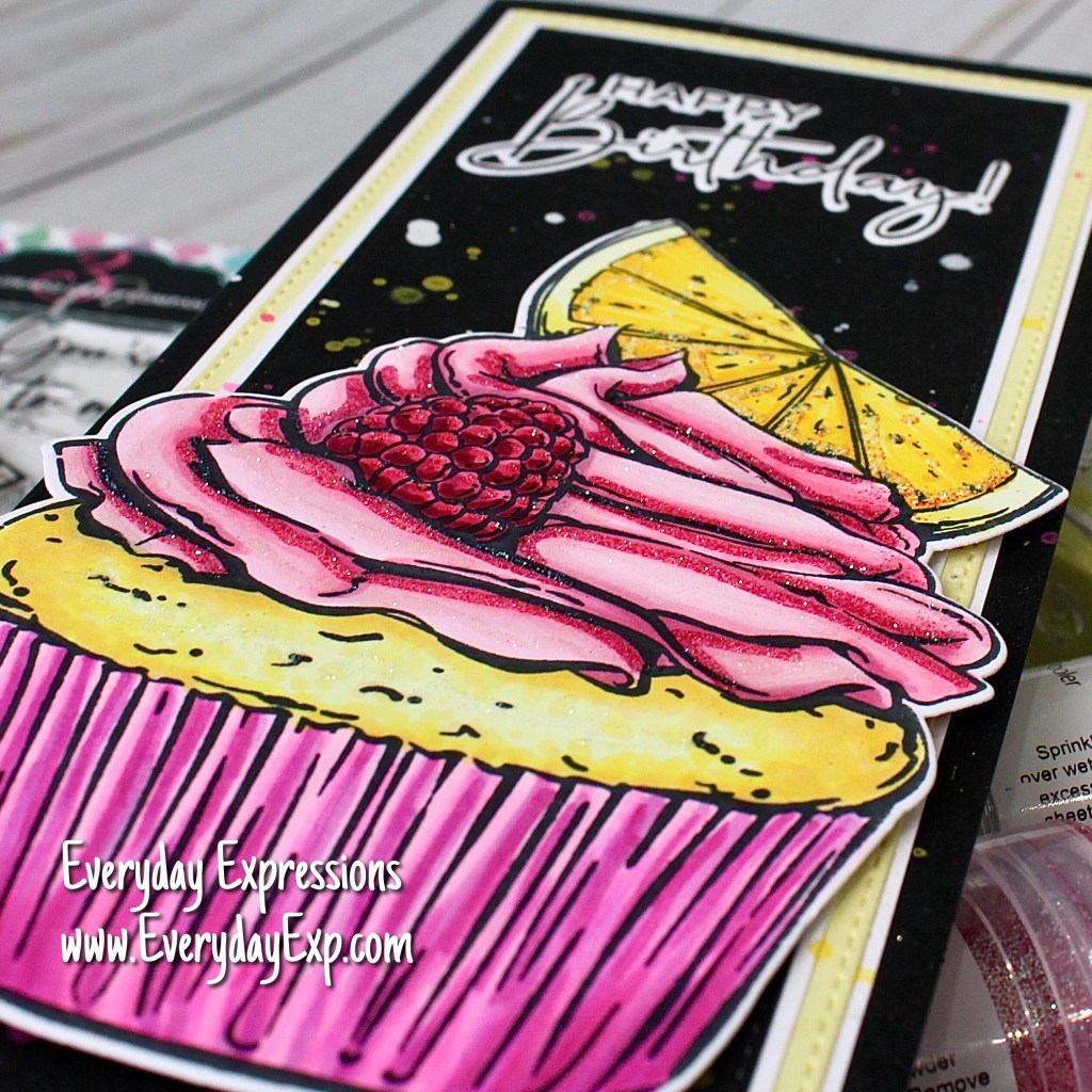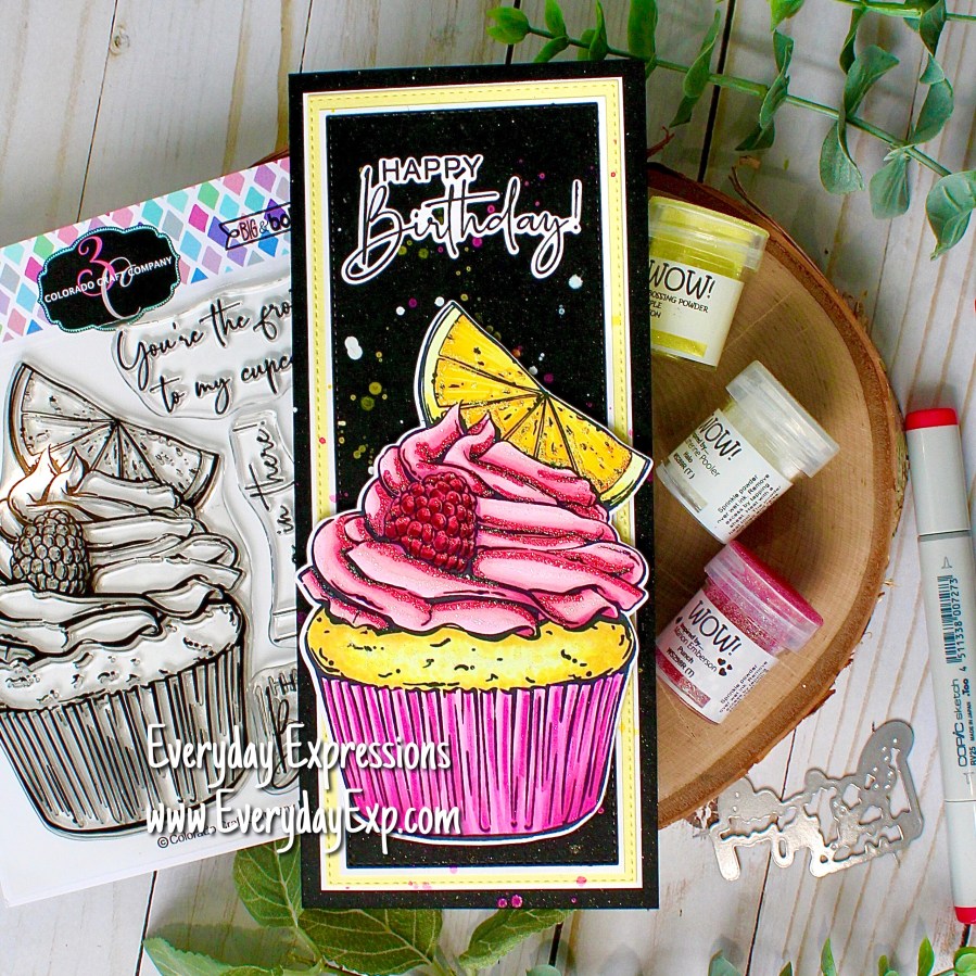 Hey Crafty Friends! Welcome back! I hope you are staying healthy, and you have had some crafty time to yourself in the last few days. Today I’m sharing a fun slimline birthday card I Copic colored for my oldest son using the new Colorado Craft Company Big and Bold Citrus Berry Cupcake stamps and dies.