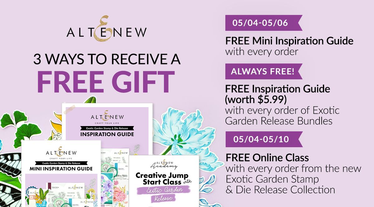 Get a FREE brand new Exotic Garden Stamp & Die Release Mini Inspiration Guide with every order from 05/04/2021 through 05/06/2021. Shop HERE!