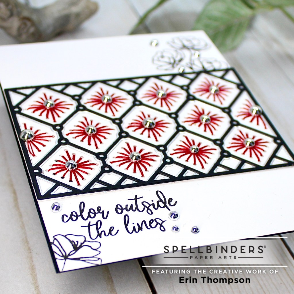 How pretty is the black, red, and silver on this card? Also, I used the Stamp of the Month to add the stamped images and sentiment. I love how easy it is to create a card with the Spellbinders’ monthly kits.