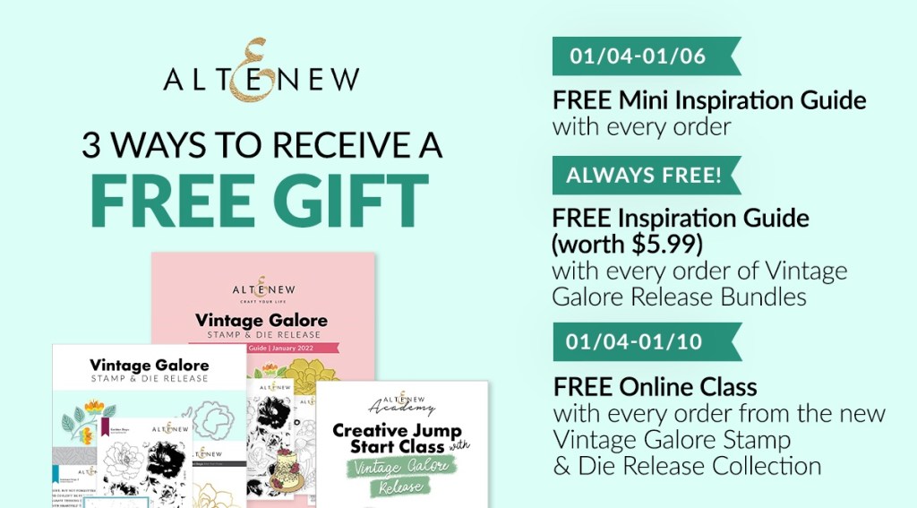 Hi Everyone and happy Altenew release day! I am so excited to share several pretty cards from the Vintage Galore Collection today. There’s also a blog hop with giveaways. So make sure you hop along for your chance to win.