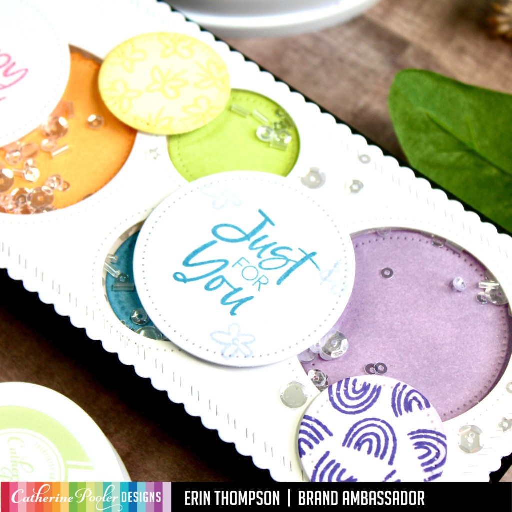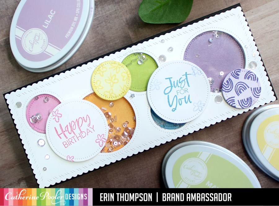 Hi Crafty Friends! I am back to share a fun shaker card using the new Double Duty Circle Dies from the latest Catherine Pooler Quint-Essentials release.
