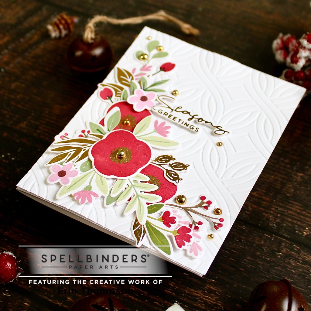 Then I layered the backgrounds on a card base, and began to layer the die cuts for a pretty floral design. I even heat embossed some WOW Embossing Powder for the large flower centers, and added some foiled foliage to complete the layout.