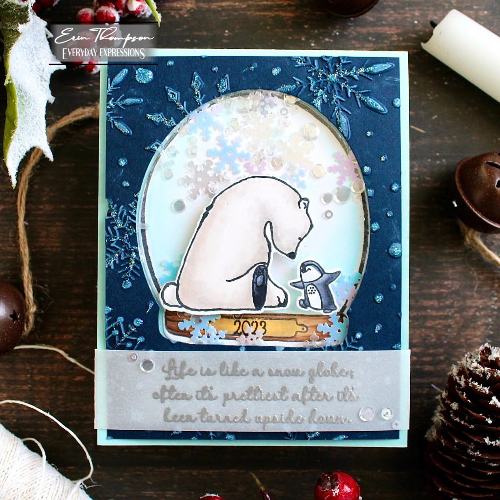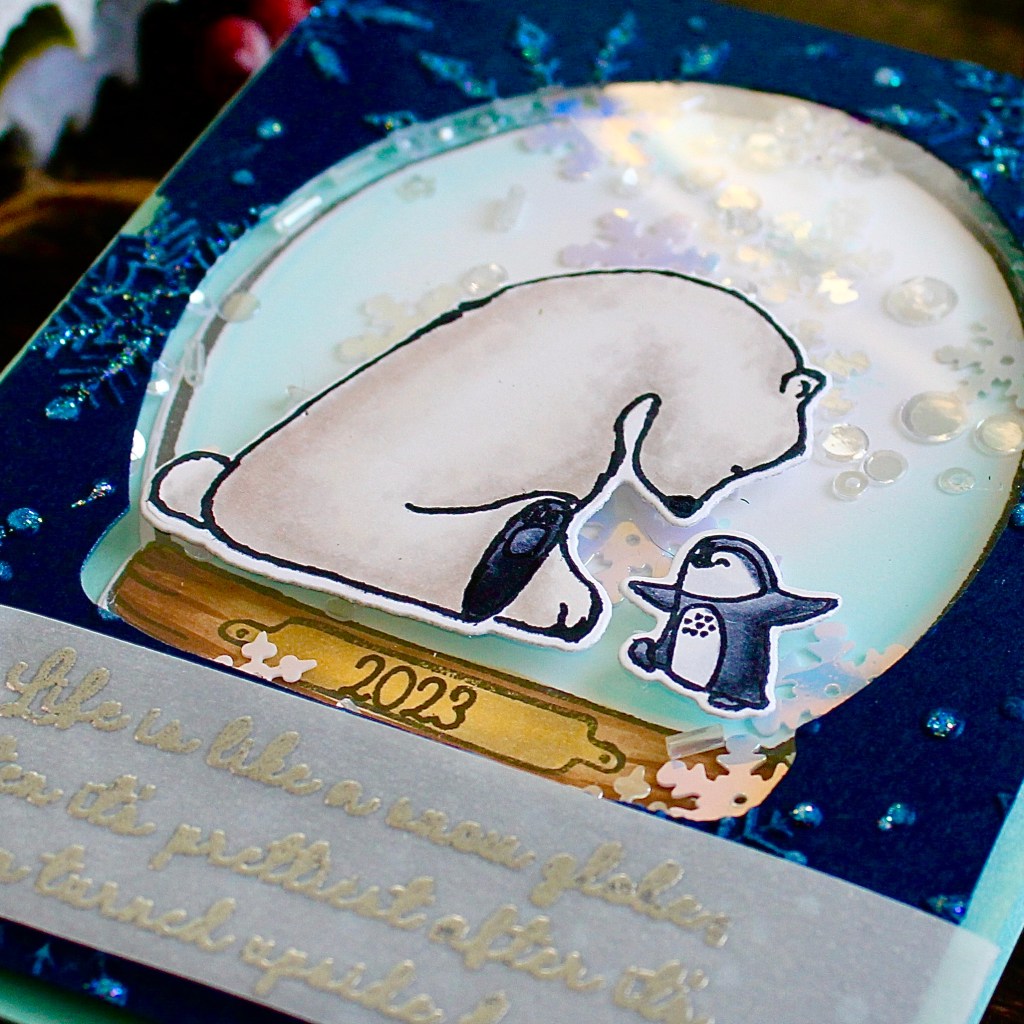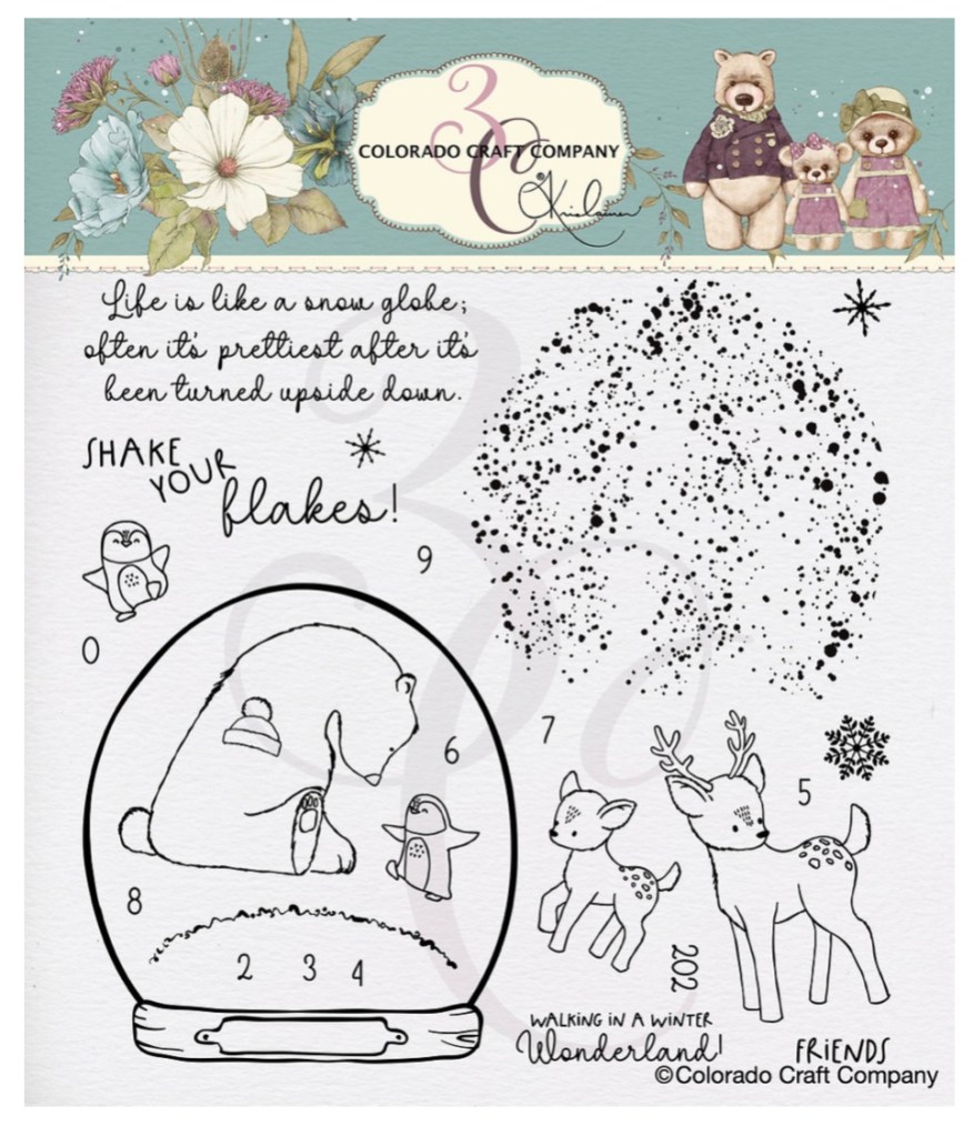 Hi Friends and welcome back! Who doesn’t love a snow globe shaker card for holiday crafting? I couldn’t help myself with this adorable new set from Colorado Craft Company and Kris Lauren. How adorable is this sweet polar bear with friend?