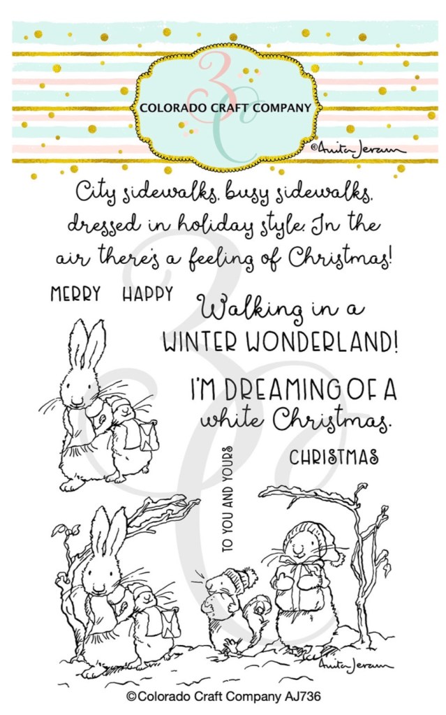Hello Crafty Friends, and welcome back. Today I’m excited to share a sweet card featuring the new Colorado Craft Company & Anita Jeram Christmas Take II release.
