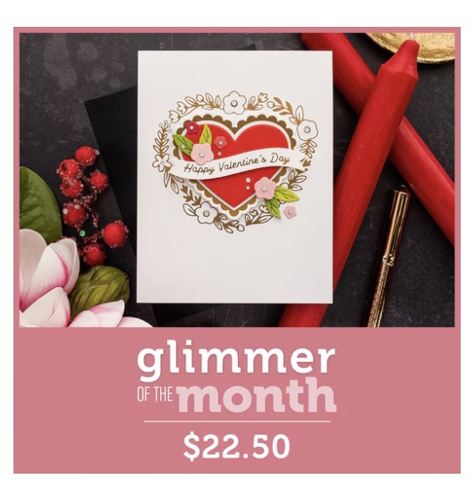 Hello Crafty Friends, and welcome back. Today I’m sharing another Valentine’s card featuring the new Spellbinders’ Paper Arts Glimmer of the Month Club.