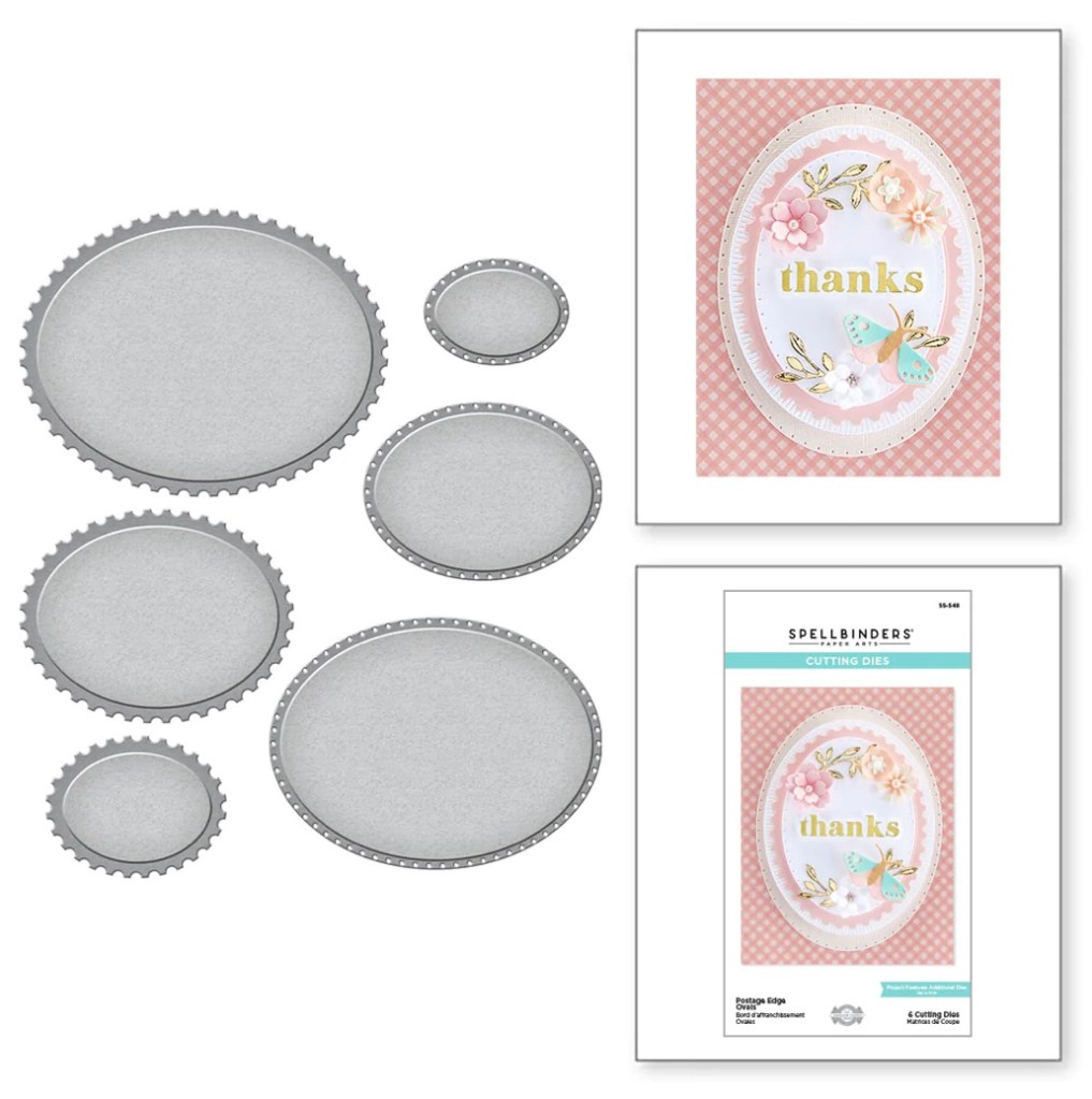 I used lavender cardstock and the new Embossing Folder of the month club to create the textured background. Then I layered all of the foiled die cut pieces with lots of foam, and adhered to an oval die cut from the Postage Edge dies collection.