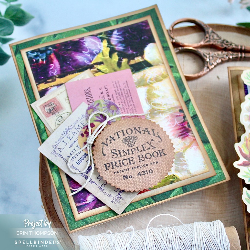 Hi Everyone, and welcome back! Today I have two lovely cards featuring the new Flea Market Finds collection from Spellbinders Paper Arts. Last week I shared adorable tags and dies featuring this collection (view that post HERE), and today I used the beautiful, jewel-toned papers layered with ephemera for these vintage-vibe cards.