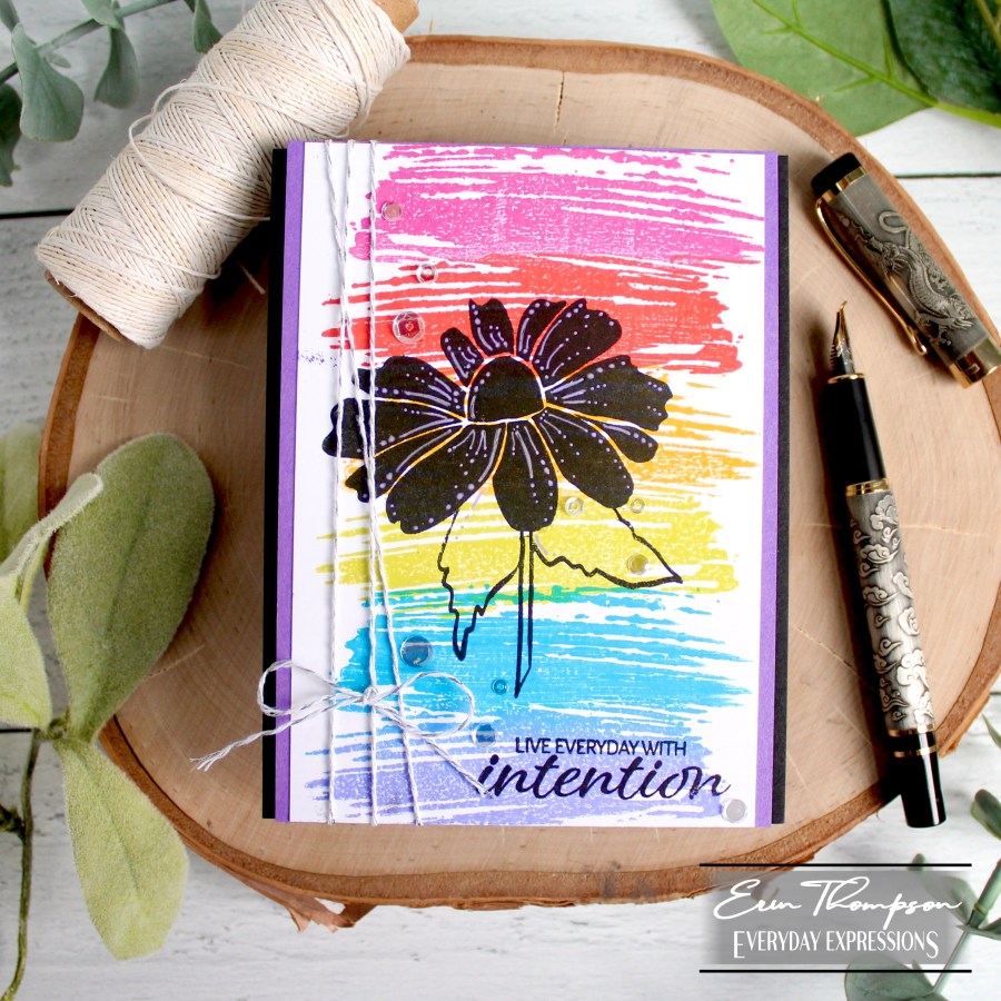The Speak Beautiful Things stamp set has so many great stamps in it. I love the swipe stamp, and how easy it was to stamp this rainbow background using Gina K. inks. Also, there are solid silhouette stamps along with the outline stamps.