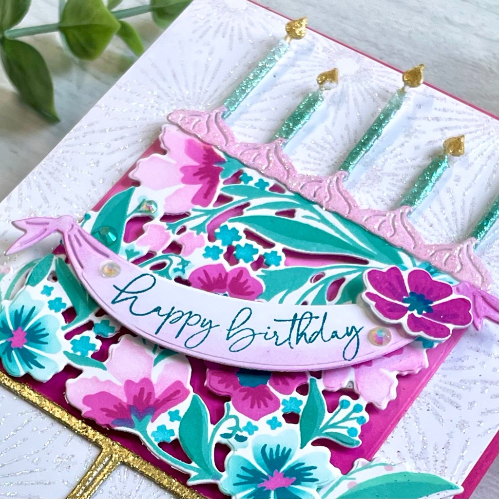 If you know me, you know that I adore everything from The Greetery, and this Takes The Cake Collection checks all of boxes for why I love everything Betsy creates: Layered Stencils, detailed die cuts, layers of dimension, and gorgeous background stamp.