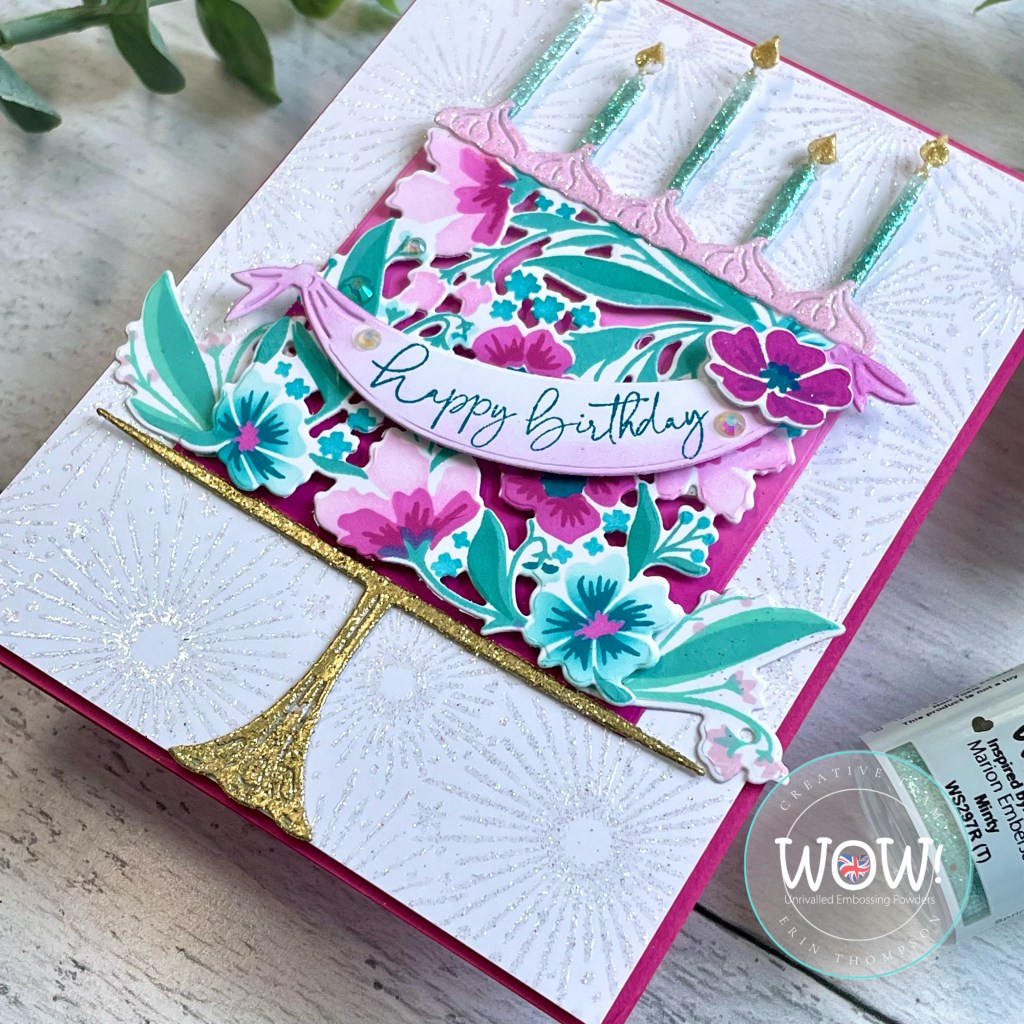Add glittery WOW! Embossing Powders to this collection, and you have a beautiful birthday card that shouts celebration for a special person.