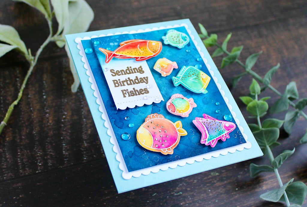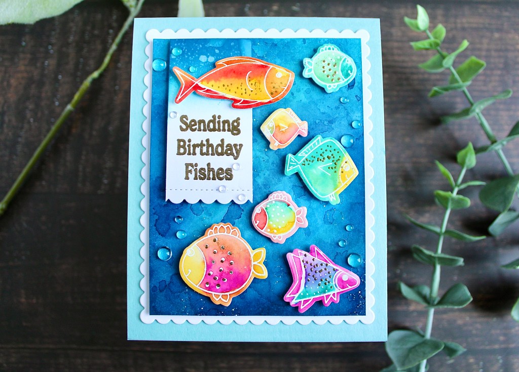 What do you think? This card makes me grin! Thanks so much for joining me today for this adorable fishy birthday card. Love and crafty hugs!