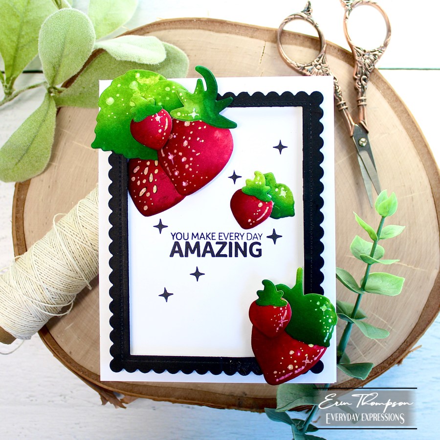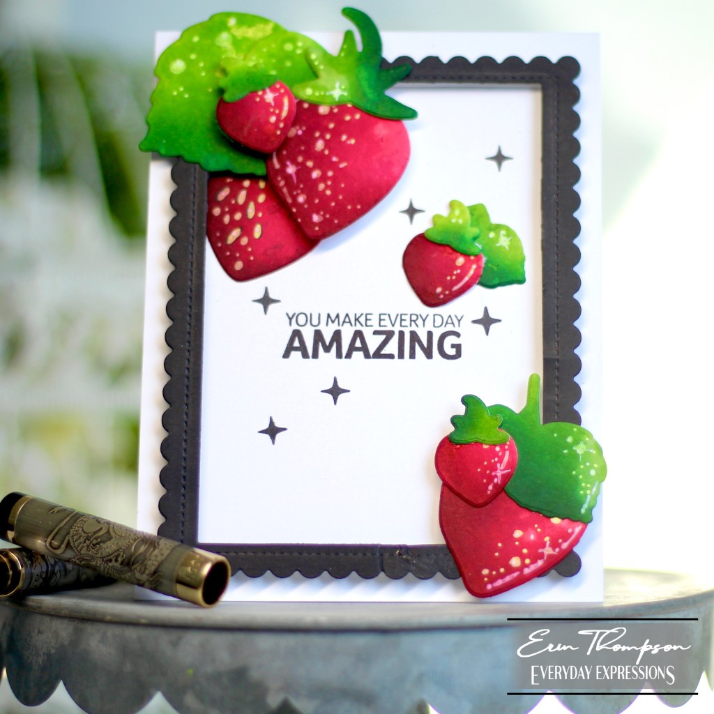 Hello Crafty Friends! Thanks for stopping by for this lovely strawberry card today. I created this card using the new Every Day Amazing stamp and dies set from the new Gina K. Designs August release.