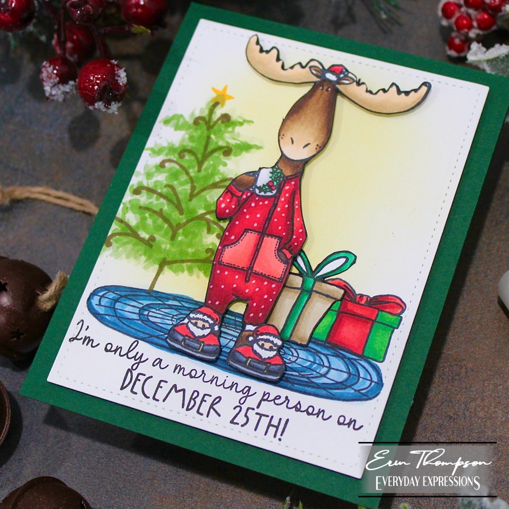 I COPIC colored this adorable Merry Christmoose stamp, and he makes me giggle with his coffee in pajamas on Christmas morning.