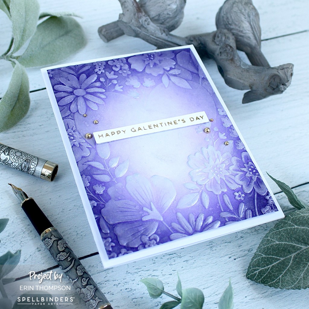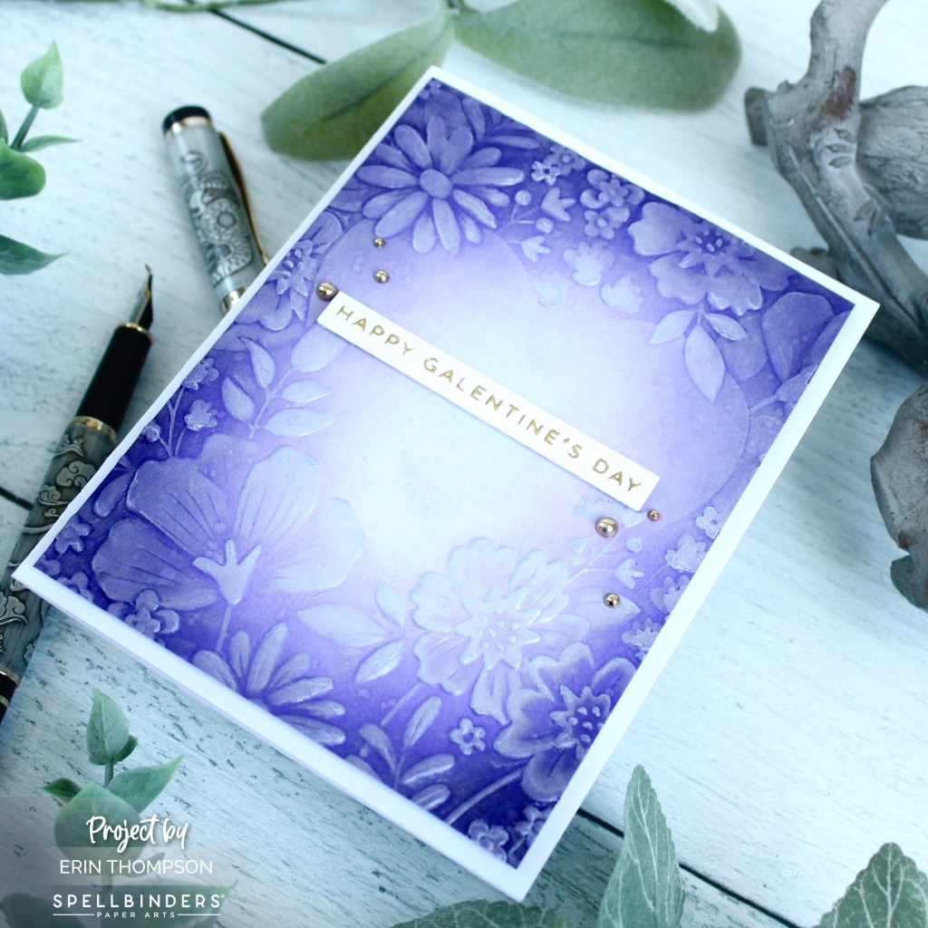 I began by ink blending purples on a piece of white cardstock, dribbled and lifted water, and then inked a little more. Next I ran it through the the die machine in the folder.