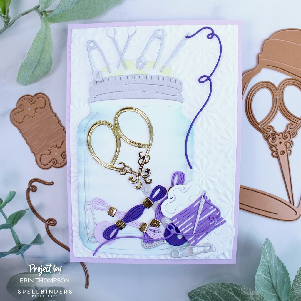 Hello Crafty Friends and welcome back, Today I have a fun Spellbinders card featuring the April Large Die of the Month Club. How sweet is this jar full of your favorite embroidery supplies?