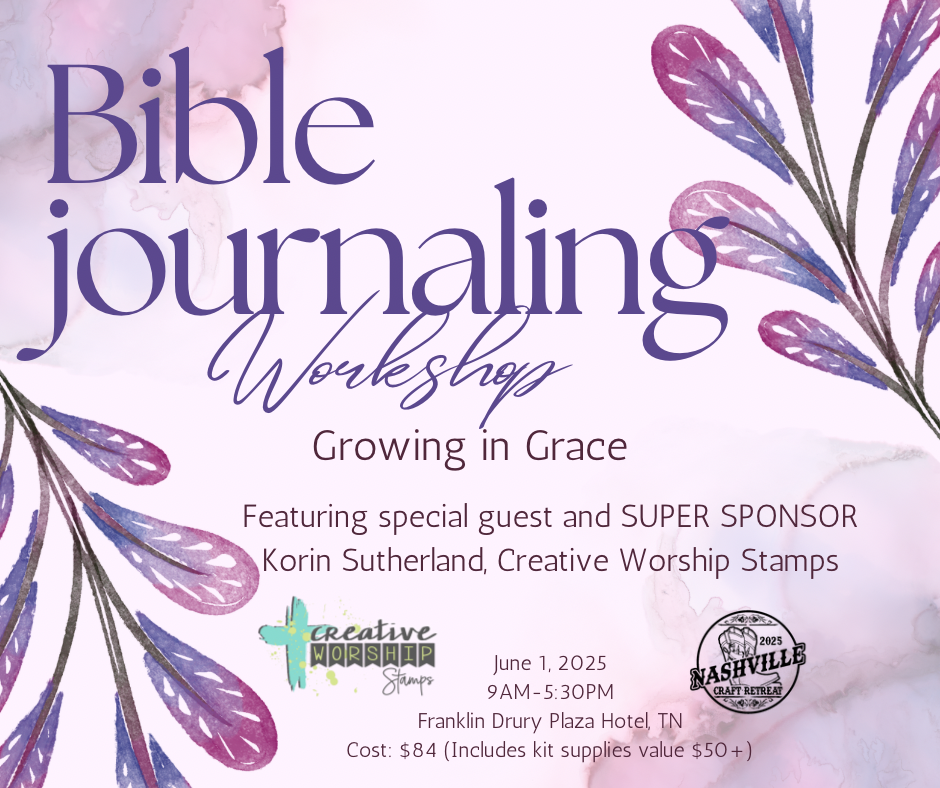 The Nashville Craft Retreat is thrilled to add a Bible Journaling Workshop to the planned festivities in 2025 for Sunday, June 1. The response has been so overwhelming that we’ve moved the class to a bigger meeting space in order to fit all of the registered guests. We now have many more open seats available for this special day of faith, worship, fellowship, and art.
