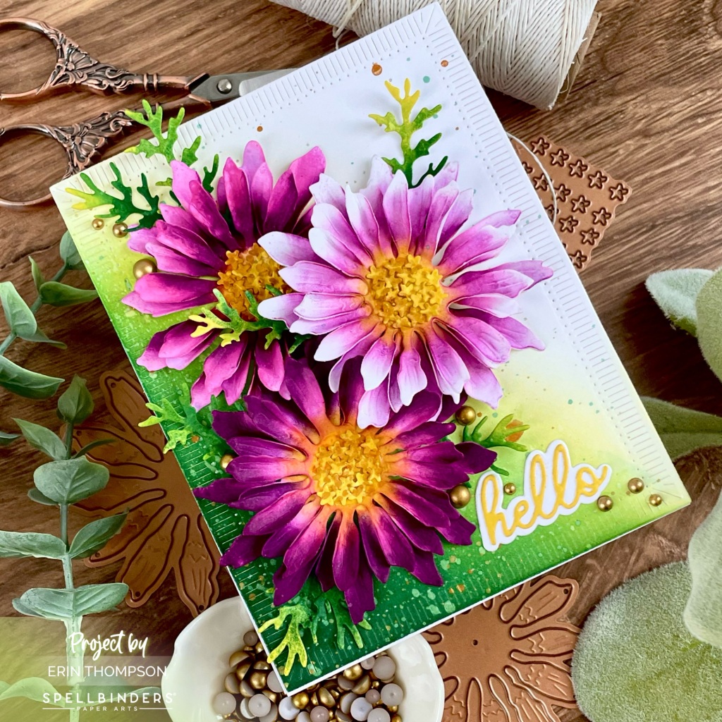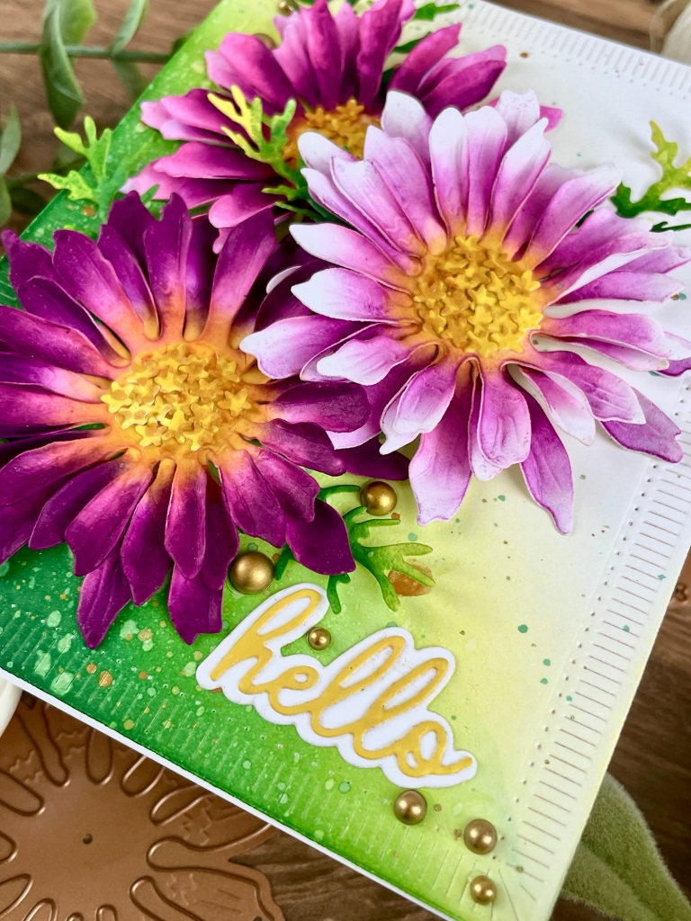 Hi there friends! Today I’m sharing a lovely card with so much dimension, and vibrant spring meadow colors. These florals are were fairly easy to create.