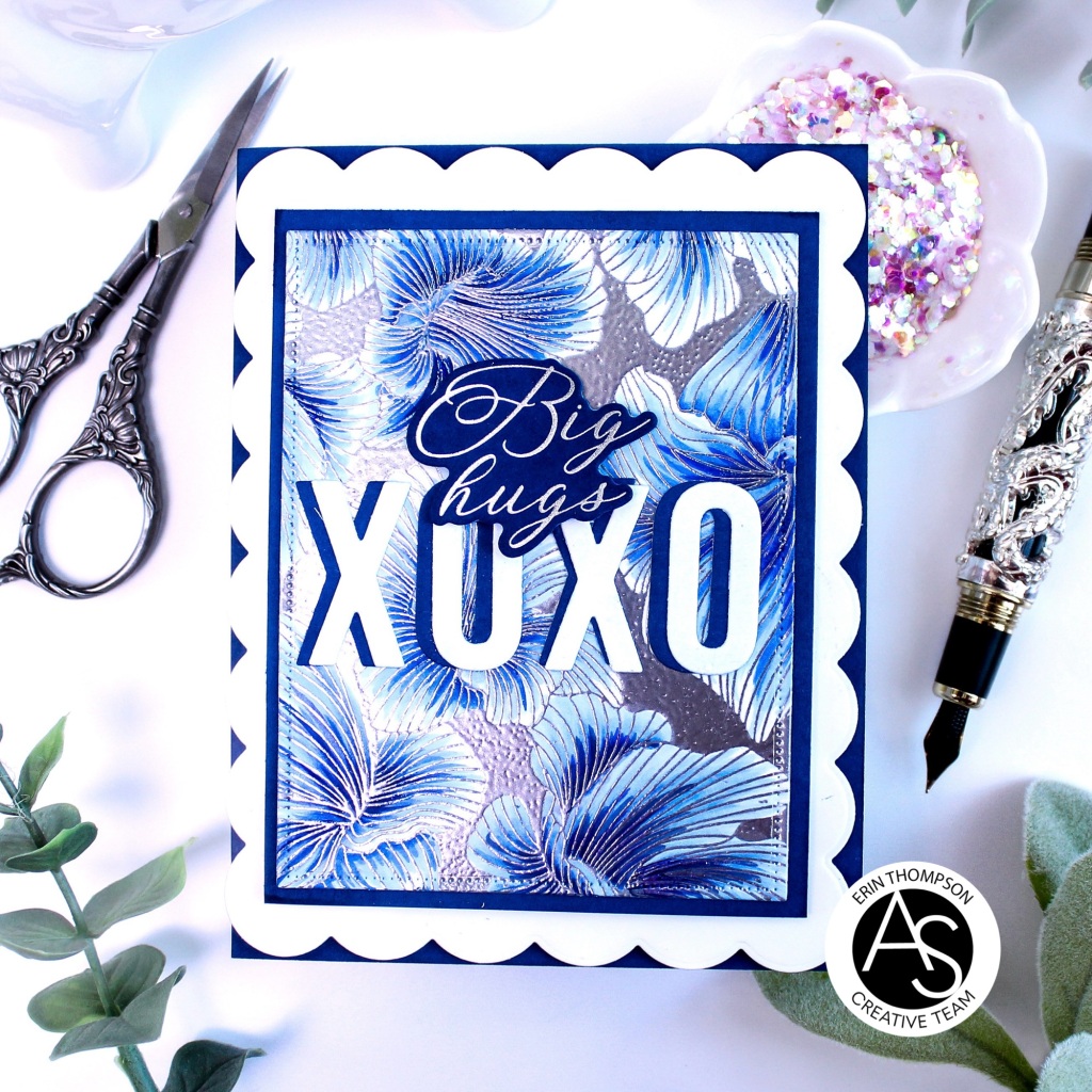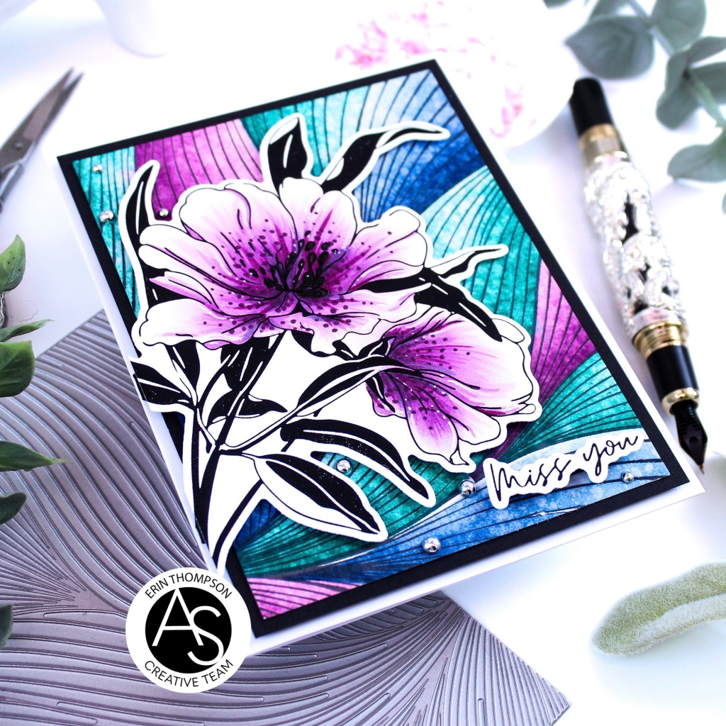 The Abstract Background Press Plate is so pretty and creative options are endless for this plate and the coordinating layered stencils. I think it is perfect combined with the bold florals, Elegant Blooms, foiled and Copic colored. Isn’t that black foil stunning?
