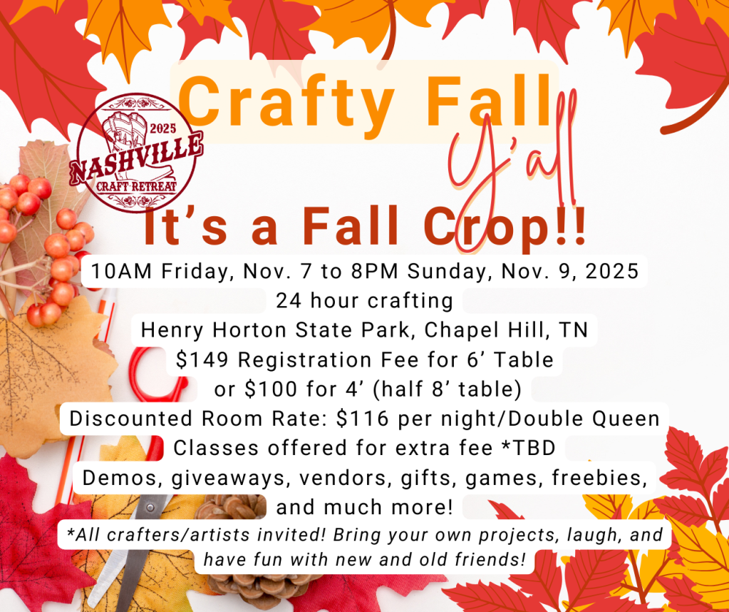 In addition to the virtual workshops, we’ve planned a fall crop. The in-person classes will take place during the crop. That means you get to attend four additional classes, and then finish projects and craft the final crop day. The cost of the 4’ table seat at the crop is added to the in-person fee for a total $274 discounted price. Yeehaw!!